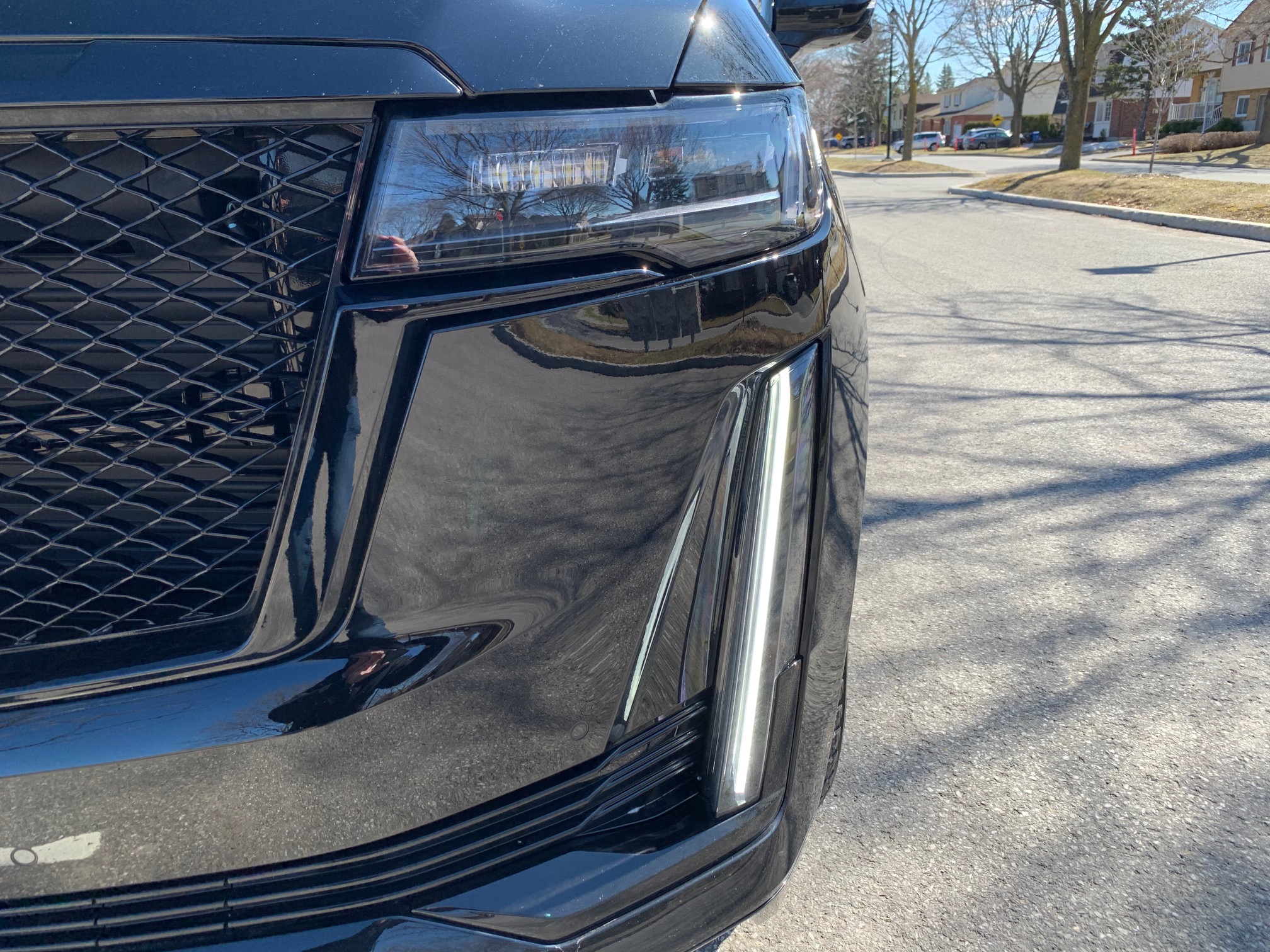 Let’s start with the exterior. Cadillac has chosen to be more conservative this time around. Gone are the big bold vertical headlights of the past replaced by small understated units.  The rear is nearly identical to the previous generation. The turn signals remain long and vertical but I have to say the look reminds me more of the very first Escalade from 1999. Cadillac has spared no expense in making the lighting on the vehicle fun. When you unlock the vehicle the turn signals light up and do a little light show which ends with the ground under the truck being illuminated.